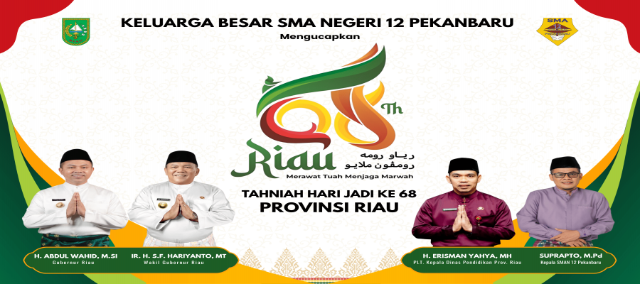 Assalamu’alaikum Wr. Wb Selamat datang di SMA Negeri 12 Pekanbaru kepada calon murid yang dinyatakan lulus pada PMB tahun 2025. Terimakasih telah mempercayaka