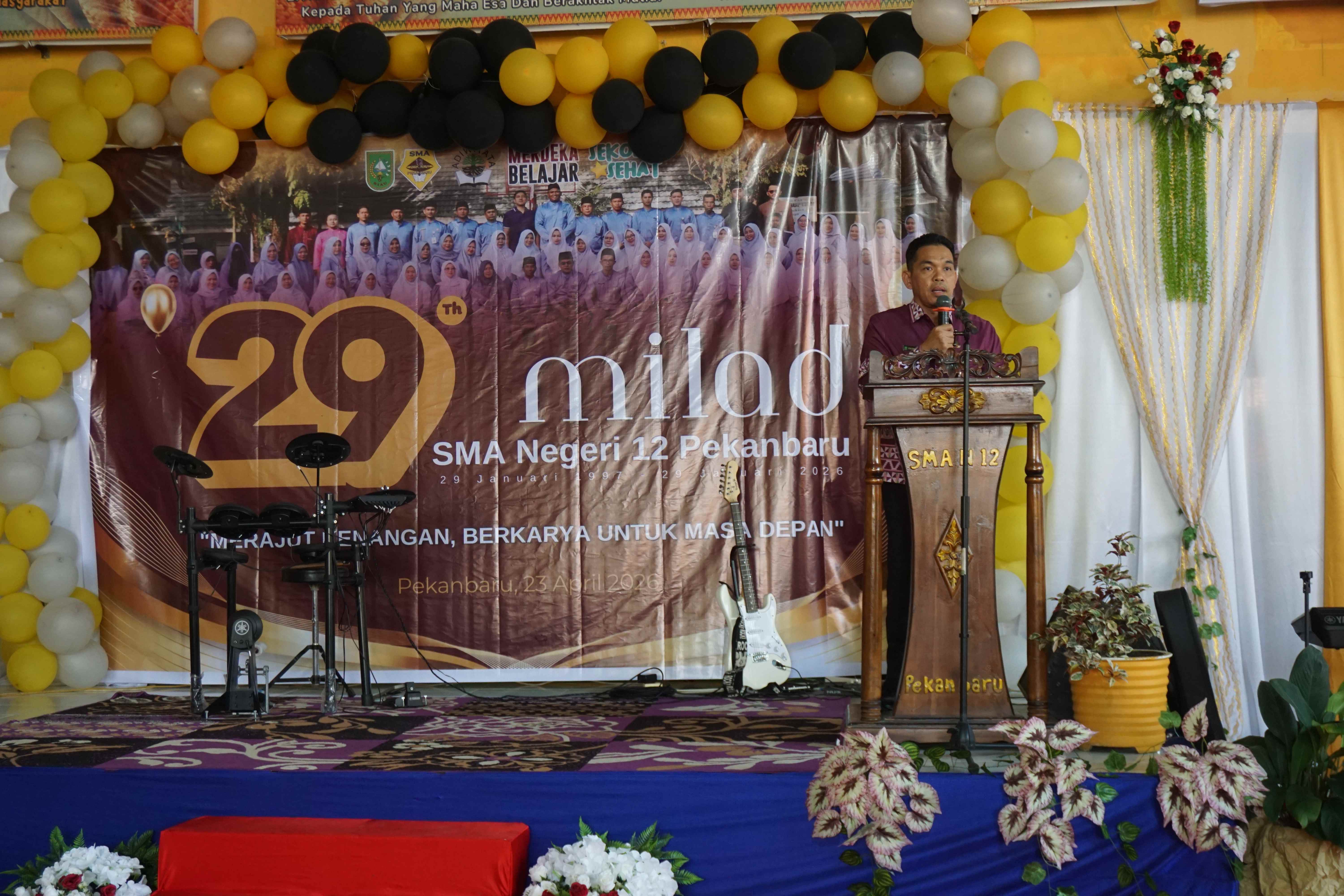 Perayaan Milad ke-29 SMA Negeri 12 Pekanbaru menjadi momen istimewa yang penuh makna dan kebersamaan. Mengusung tema “Merajut Kenangan, Berkarya untuk Masa Depan”, kegiatan ini tidak hanya menjadi ajang refleksi perjalanan panjang sekolah, tetapi juga momentum untuk memperkuat semangat berkarya demi masa depan yang lebih gemilang.