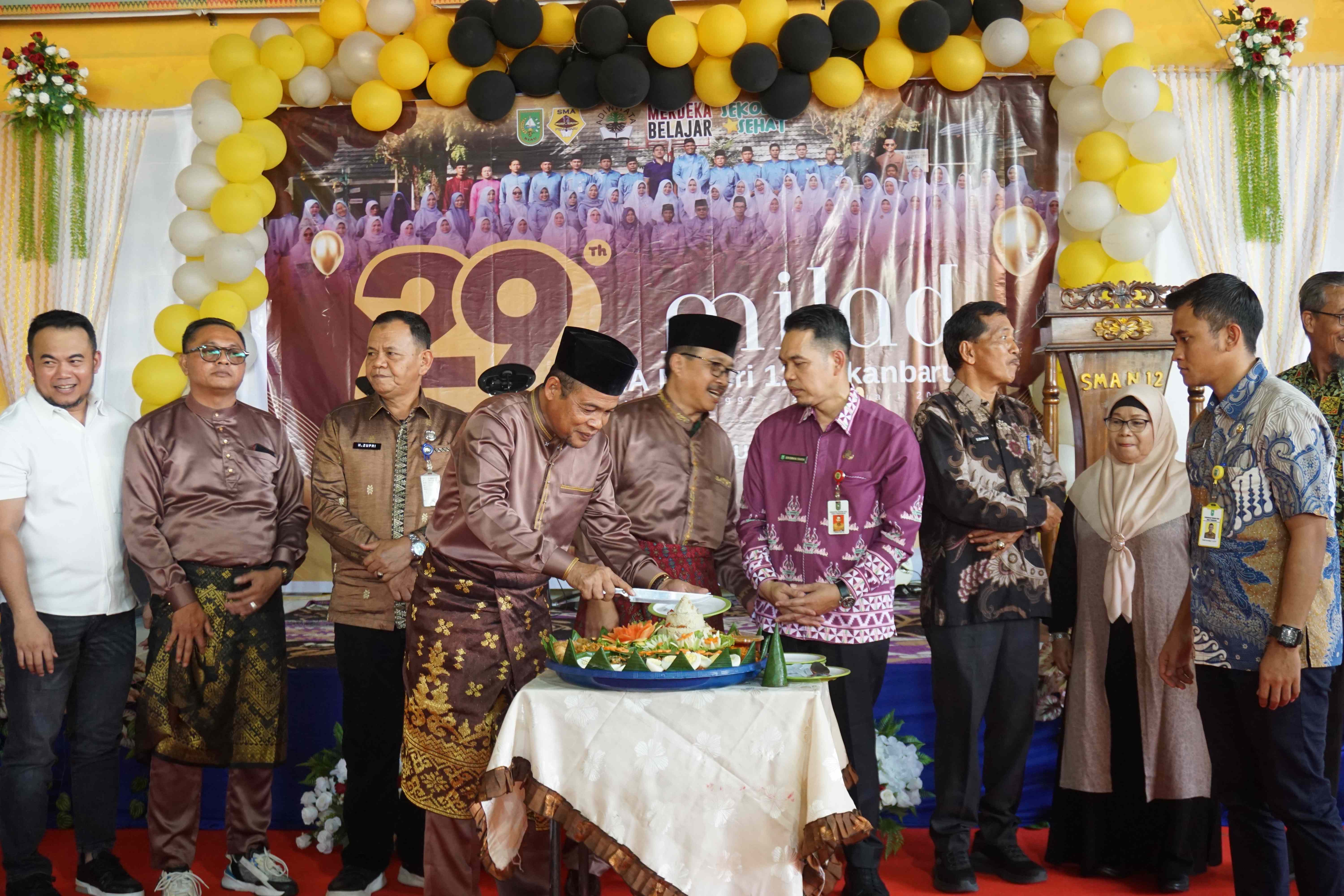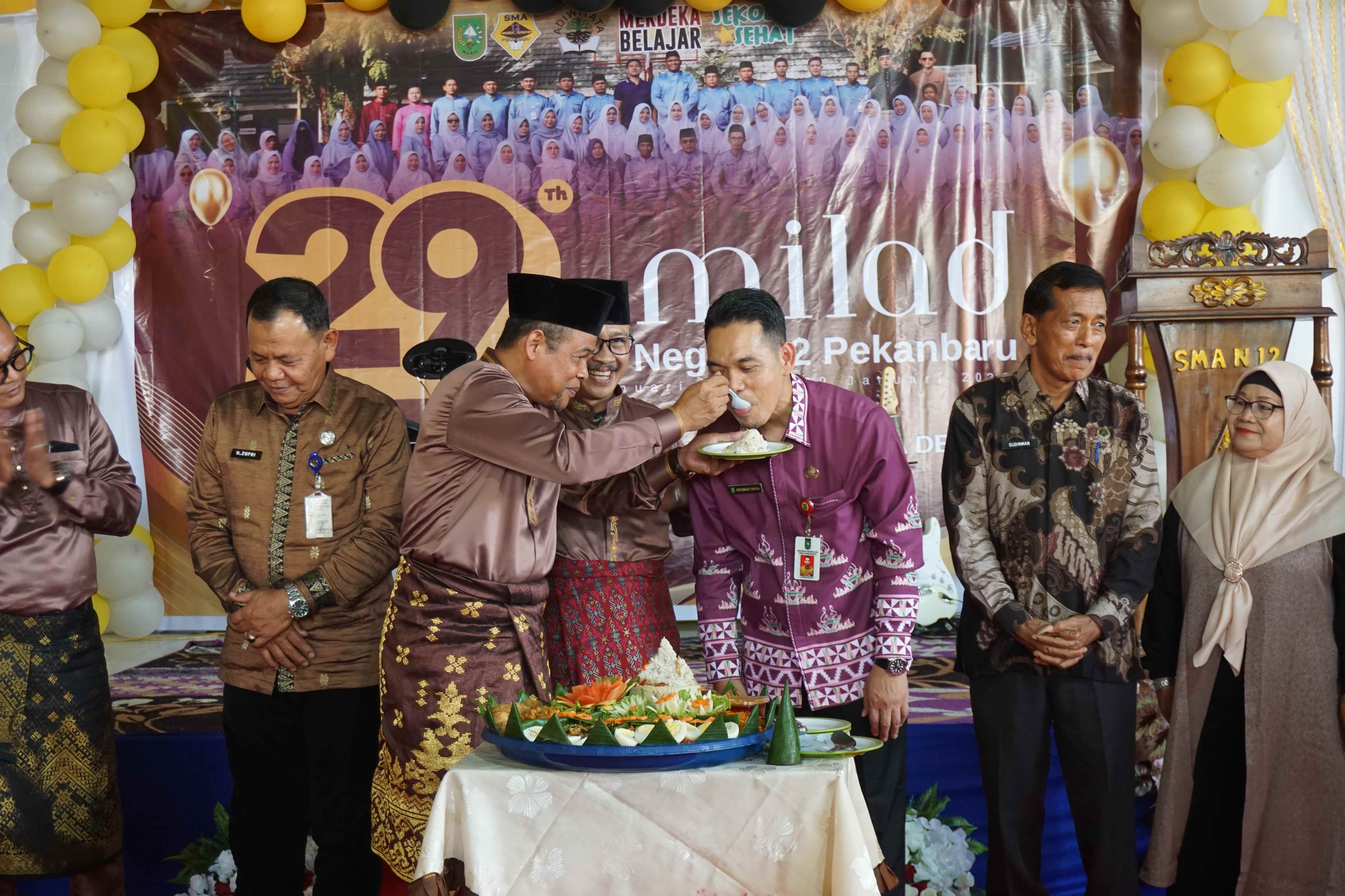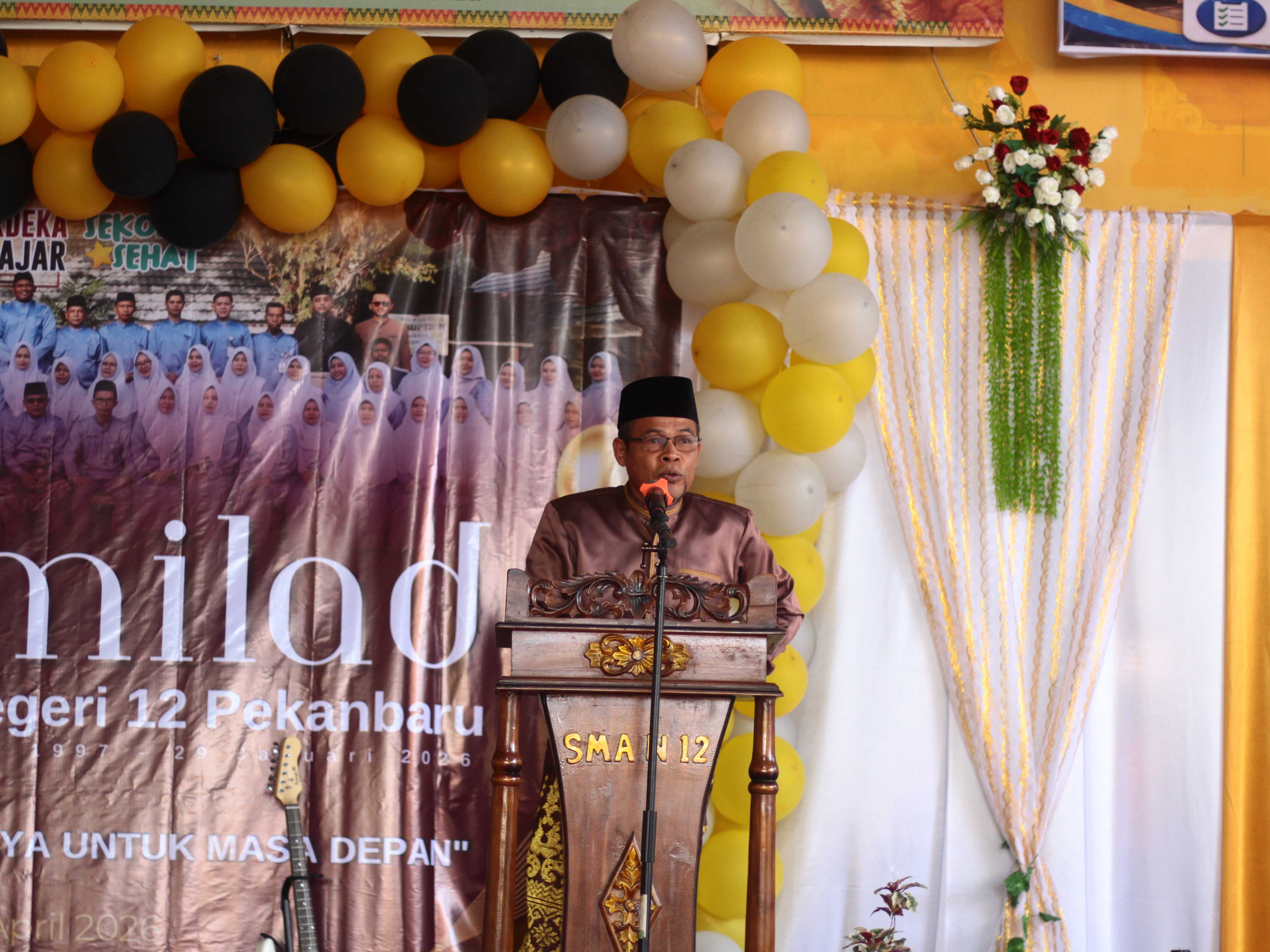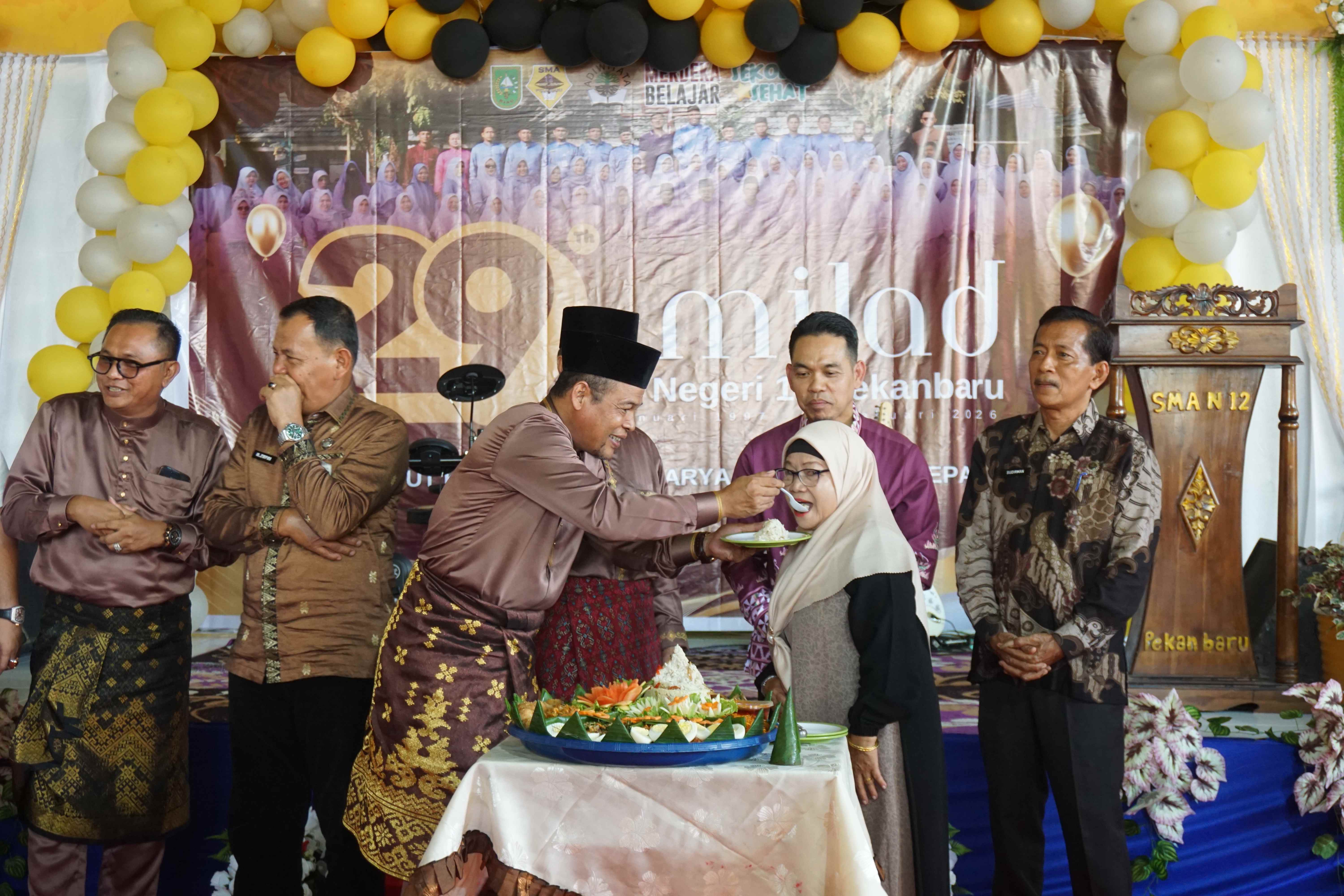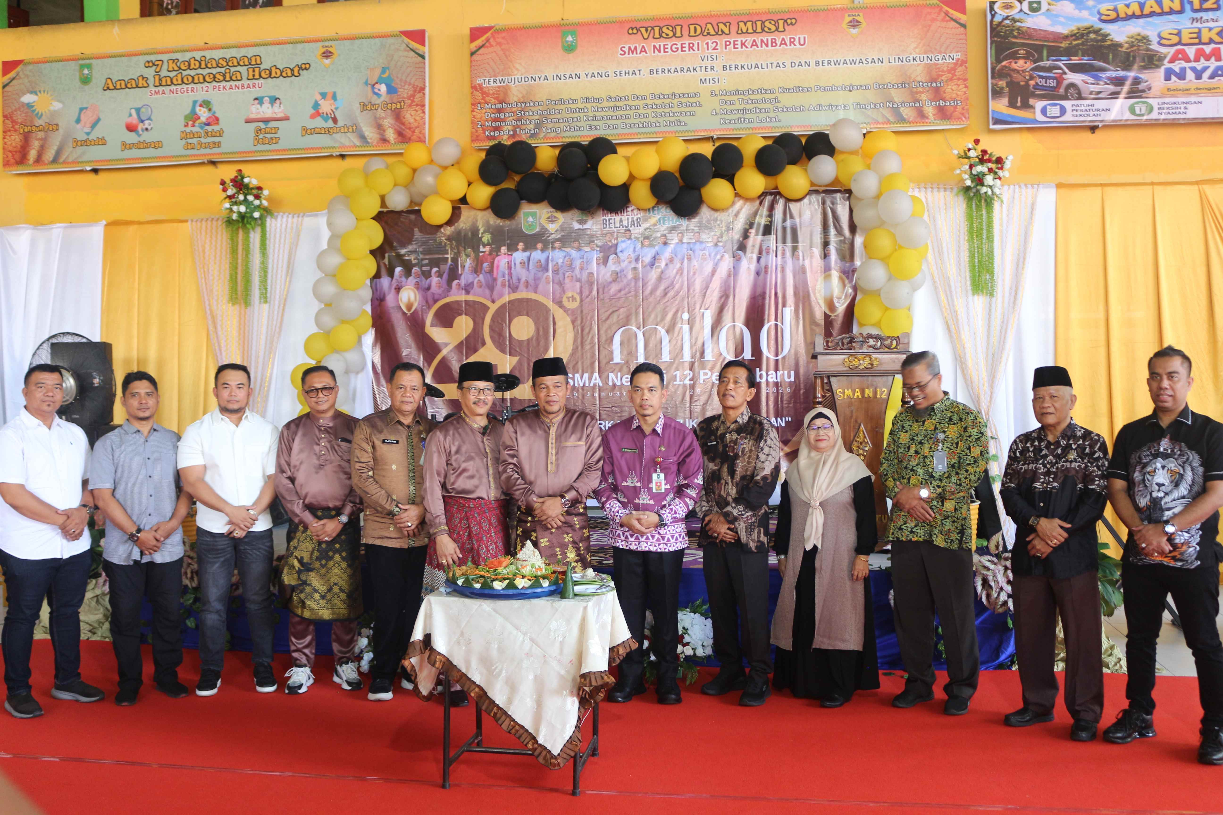 Acara ini turut dihadiri oleh Kepala Dinas Pendidikan Provinsi Riau, Bapak H. Erisman Yahya, M.H., Pengawas Sekolah, Ketua Komite, para guru purna tugas, serta alumni dari berbagai angkatan. Kehadiran para tokoh pendidikan dan keluarga besar SMA Negeri 12 Pekanbaru tersebut semakin menambah khidmat sekaligus semaraknya peringatan milad tahun ini.